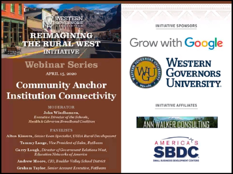 April 21, 2020— Chief Intelligence Officer of the Boulder Valley School District Andrew Moore oversees 100 miles of private fiber that connects all but two of his district’s schools. He expressed the need for all 100 miles of this fiber to be shared equally at a webinar hosted by the Western Governo