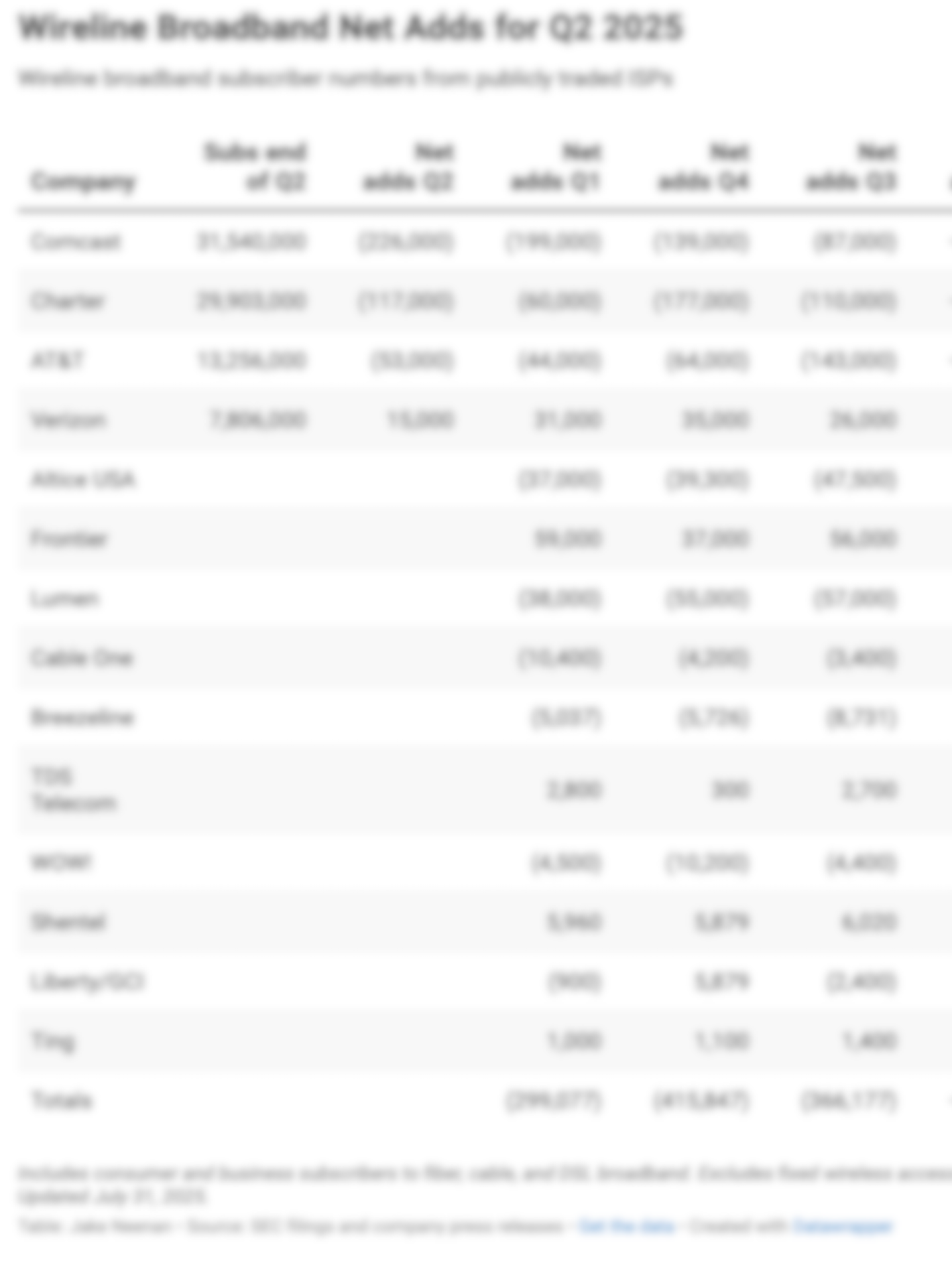 WASHINGTON, July 25, 2025 – Charter Communications reported 117,000 lost broadband subscribers in the second quarter of 2025, worse than the 74,000 Wall Street had been expecting but better than the same period last year.