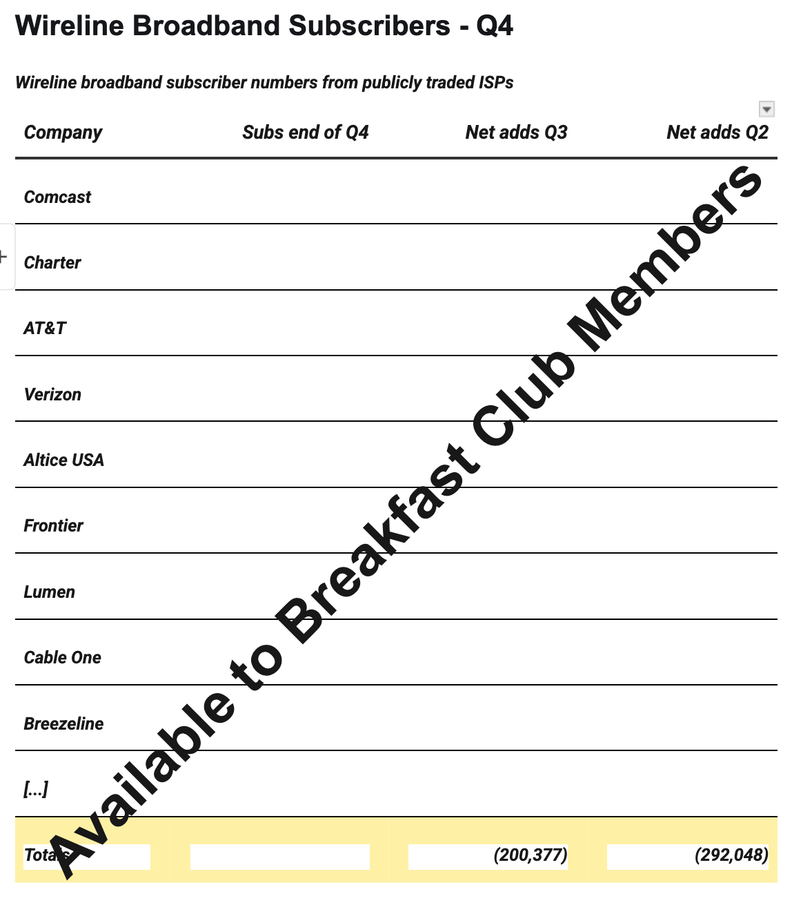 “We doubt investors expect a return to growth in broadband subs at this stage (they certainly don’t for 2025),” Chaplin wrote. “An improvement from 2024 levels to a pace of steady, modest declines is likely good enough.”