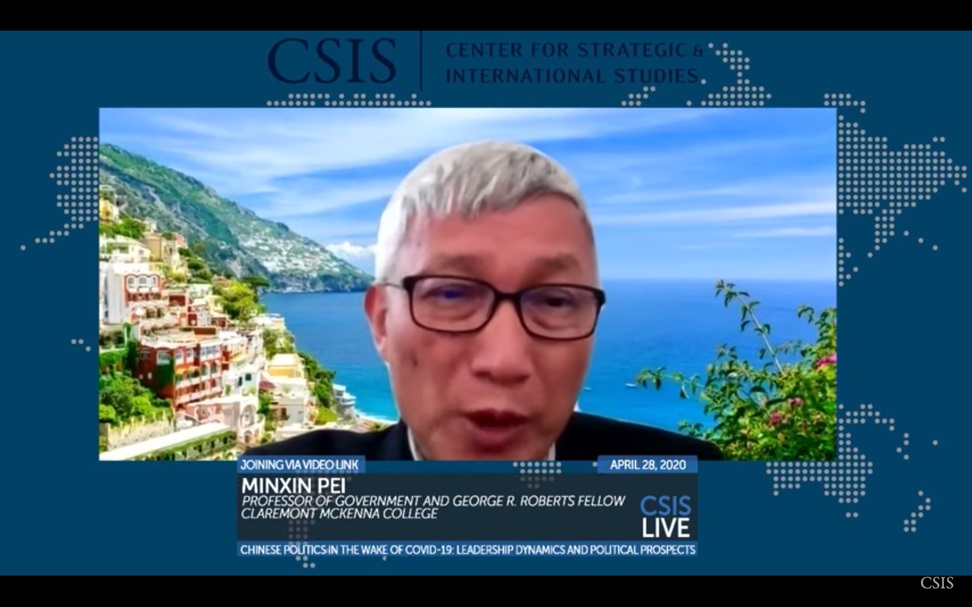 April 29, 2020—China’s response to the novel coronavirus will exact irreparable damage to the Chinese Communist Party’s power, according to Minxin Pei, professor of government and fellow of Claremont McKenna College. Pei spoke at a webinar hosted by Center for Strategic and International Studies on
