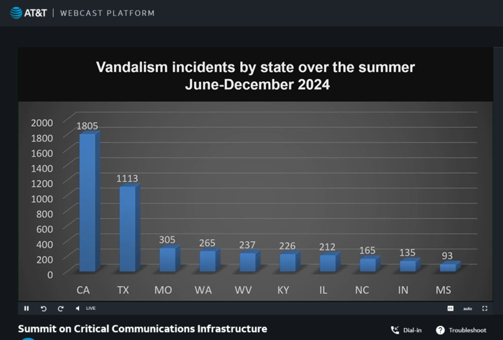 The spate of attacks has caused widespread service outages, sometimes affecting more than 100,000 customers at once. Currently, infrastructure vandalism is typically charged as misdemeanor property damage.