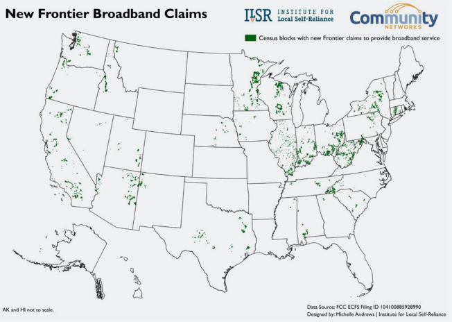 In a recent FCC filing, Frontier asserted that it has has covered 17,000 census blocks with 25 Megabits per second (Mbps) down / 3Mbps up broadband speed since June 2019.