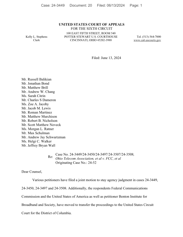 The Clerk said responses to the FCC’s motion to move the case “shall be filed on or before Monday, June 17, 2024.”