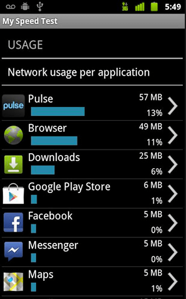 I spent some time explaining the tool that Marshini Chetty and my students have built on top of BISmark called uCap (longer paper here). Briefly, uCap is a tool that allows home network users to determine the devices in their home that consume the most data. It also allows users to see what domains they are visiting that consume the most bandwidth. It does not, however, tell the user which applications or people are using the most bandwidth (more on that below). Below is a screenshot of uCap that shows device usage over time. My students have also built a similar tool for mobile devices called MySpeedTest, which tells users which applications are consuming the most data on their phones. A screenshot of the MySpeedTest panel that shows how different applications consume usage is shown below (Click to enlarge):