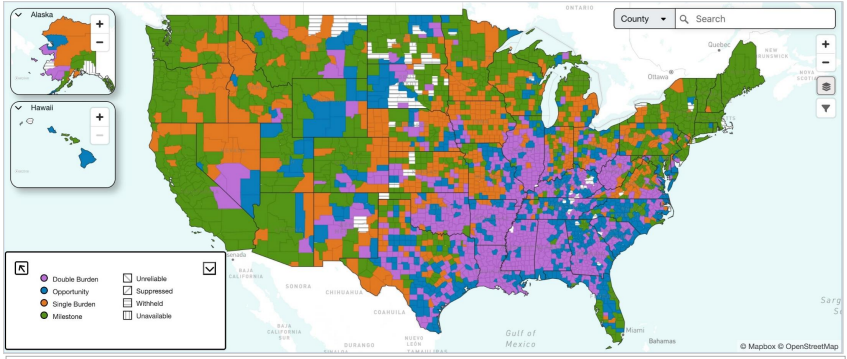 Among its findings, the FCC's updated platform reveals that 562 of 3,143 U.S. counties – approximately 18% – face a “Double Burden” of poor broadband access and high maternal health risks, including diabetes, hypertension, and preterm birth.