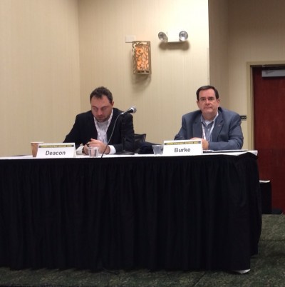 Aaron Deacon of KC Digital Drive, and Mike Burke, of the Kansas City Mayors’ Bi-State Innovation Team, at the Broadband Communities Economic Development Summit