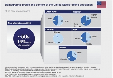 The figures are based on a variety of federal data sources, as analyzed by McKinsey in the report “Offline and Falling Behind: Barriers to Internet Adoption.”
