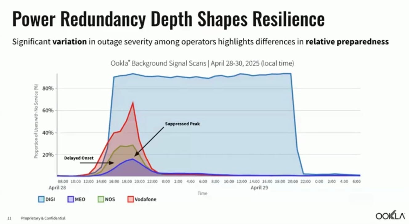Yet outcomes varied sharply: Portuguese operator MEO, which had invested heavily in backup batteries and redundancy, managed to keep large parts of its network running, while another operator saw more than 90 percent of its subscribers lose service for over 24 hours.