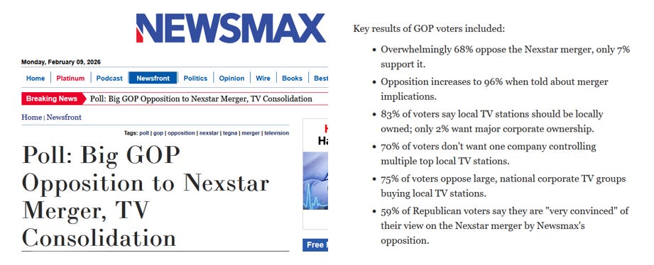 Newsmax-Promoted Poll Claims GOP Primary Voters Oppose Nexstar-TEGNA Merger By a Lot