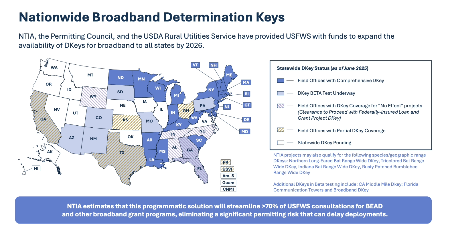The agency said it estimated those DKeys would streamline about 70 percent of FWS consultations for BEAD projects and other broadband deployments funded by the agency, taking a typically monthslong process down to about an hour in many cases.