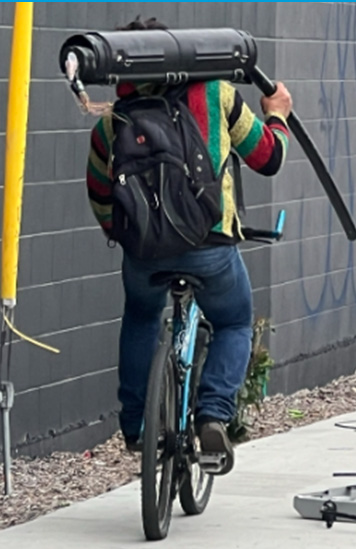 Left: Thief makes off on bike with severed wire and splicing box. Right: Truckload of stolen wires.
