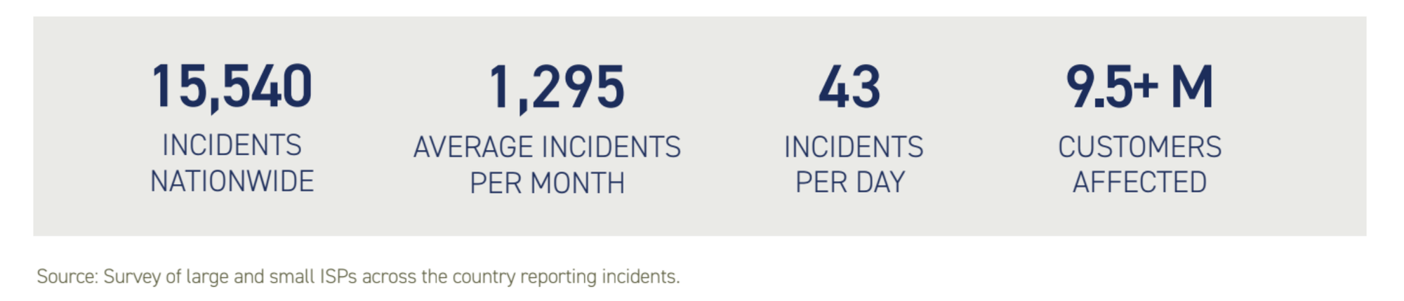 Communications outages resulting from theft and vandalism have downstream effects that are equally problematic, costing businesses that rely upon reliable communications networks millions of dollars in economic damages. These events create delays in business operations that lead to lost productivity and revenue. Companies that rely on broadband and phone services, for instance, may face delays in transactions, customer service issues, and operational inefficiencies.