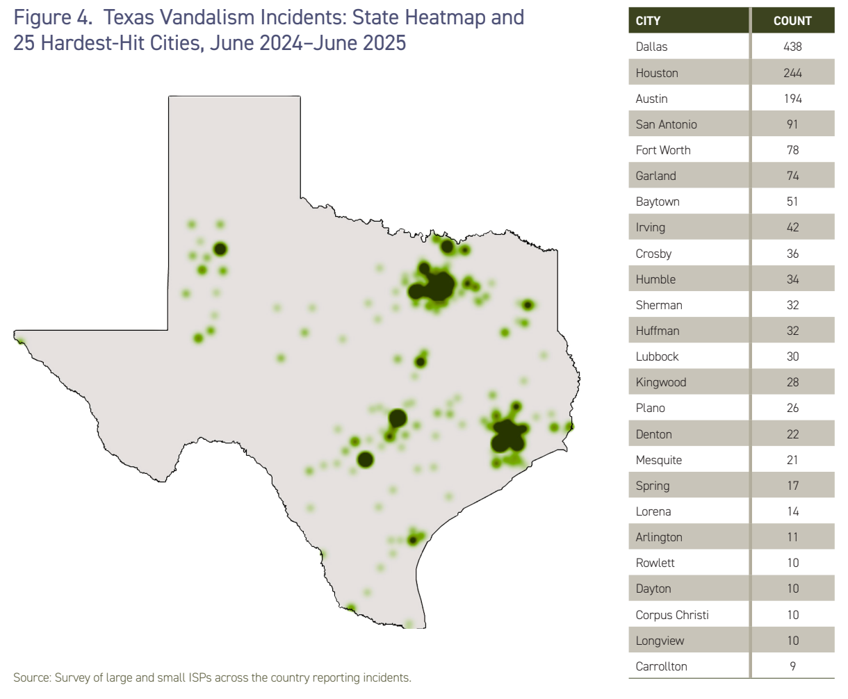 In response, communications providers, state governments, law enforcement, and federal lawmakers have taken important steps. States such as Kentucky, Texas, and Minnesota have strengthened critical infrastructure protections and expanded felony classifications for theft and vandalism. Municipal initiatives in Los Angeles and Louisville have led to arrests and recovery of stolen materials. At the federal level, H.R. 2784 — The Stopping the Theft and Destruction of Broadband Act of 2025 — has been introduced to close statutory gaps and criminalize attacks on privately owned communications networks nationwide.