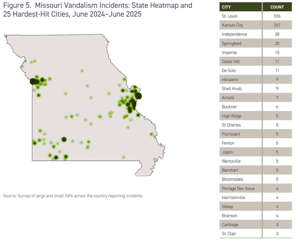 - Missouri: Communications networks and facilities are classified as critical infrastructure, with enhanced penalties for damage.