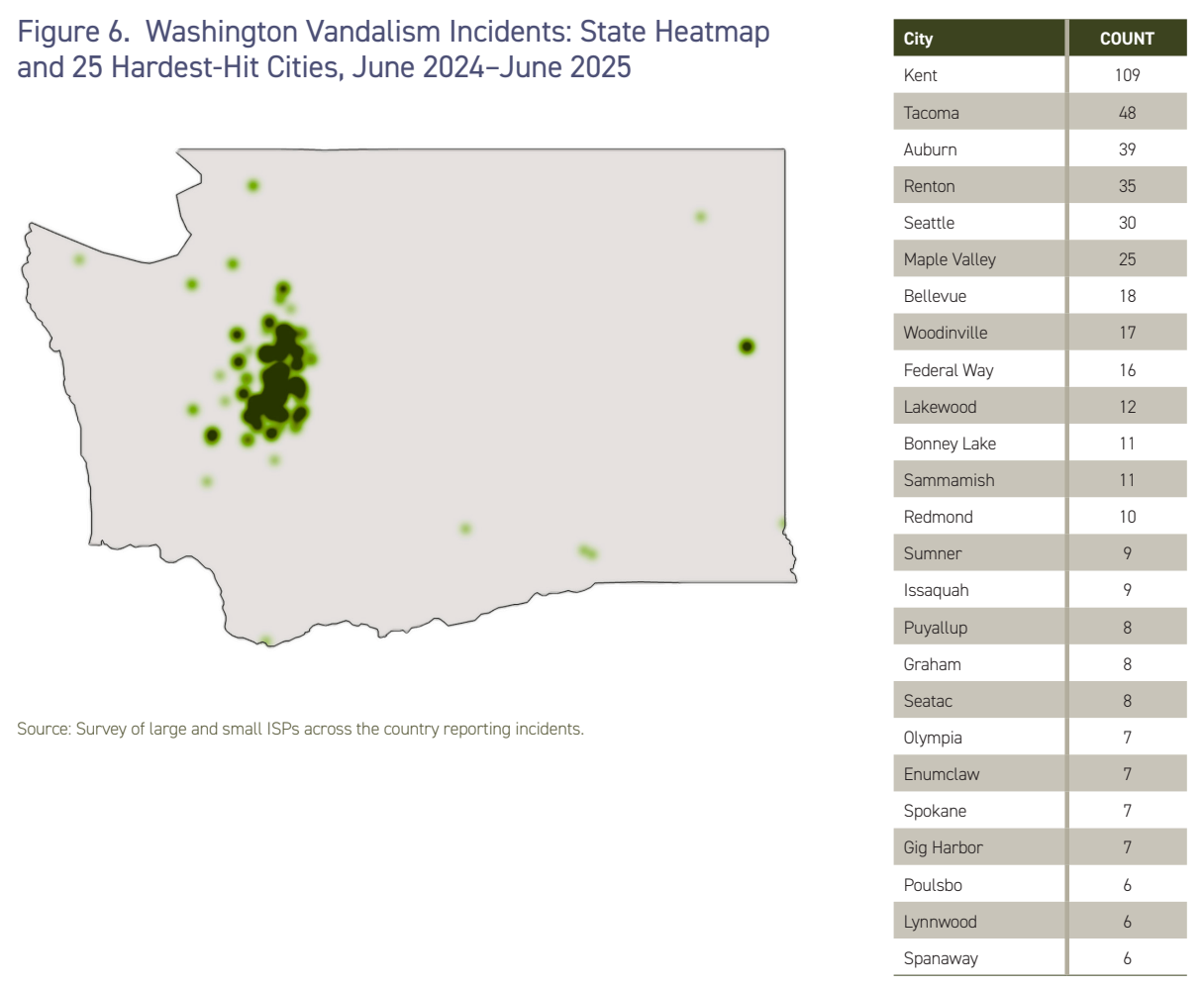 - Bremerton, WA: In April 2024, a copper cut shut down the local airport and disrupted Mission Creek Correctional, creating a major security risk. It was one of 69 line-cutting incidents in the state this year, costing Lumen over $500,000.