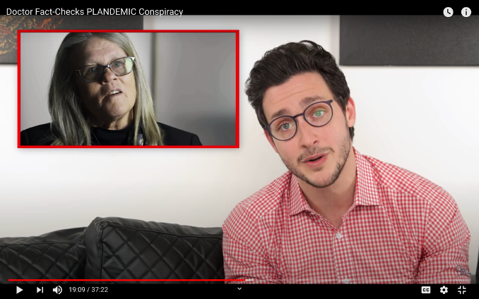 Screenshot of video “Doctor Fact-Checks PLANDEMIC Conspiracy”