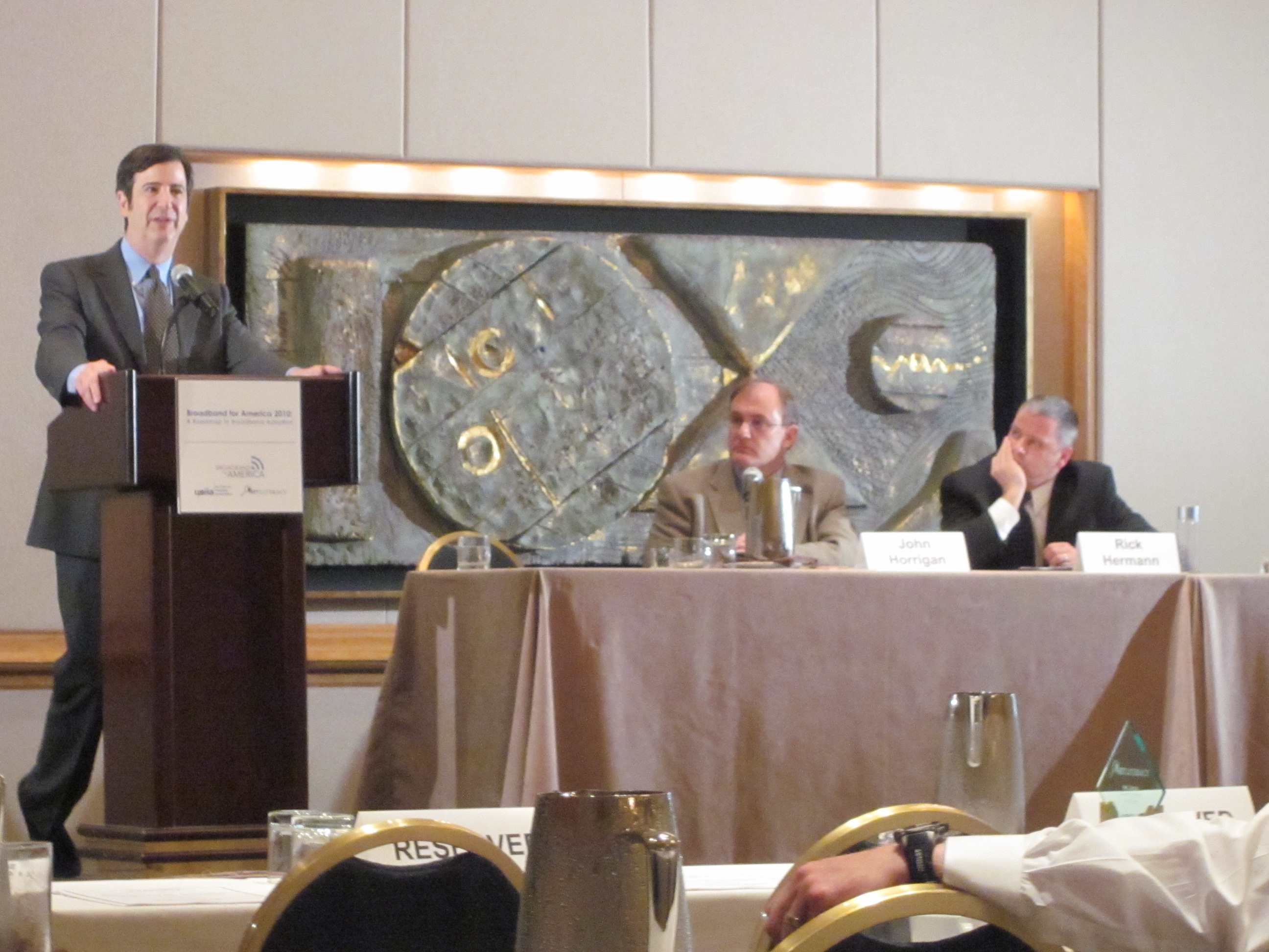 The first panelist to speak was Manager of US Public Sector Initiatives for Intel Rick Herrmann who emphasized the need for increased education as a mechanism for increasing long term adoption. “The best path to high broadband adoption is to have a population that understands the importance” Hermann suggested that all students grades K-12 should have broadband access at home and at school. Additionally he stressed the need for properly trained teachers; Hermann proposed a national training center for IT Teachers.