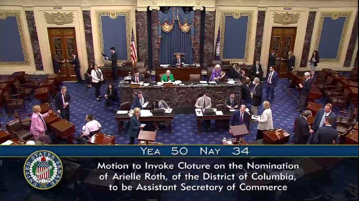 The Senate voted Thursday 50-34 to invoke cloture on Arielle Roth’s nomination, limiting lawmakers debate on Roth’s nomination to 30 hours, after which a vote on her nomination may be held.