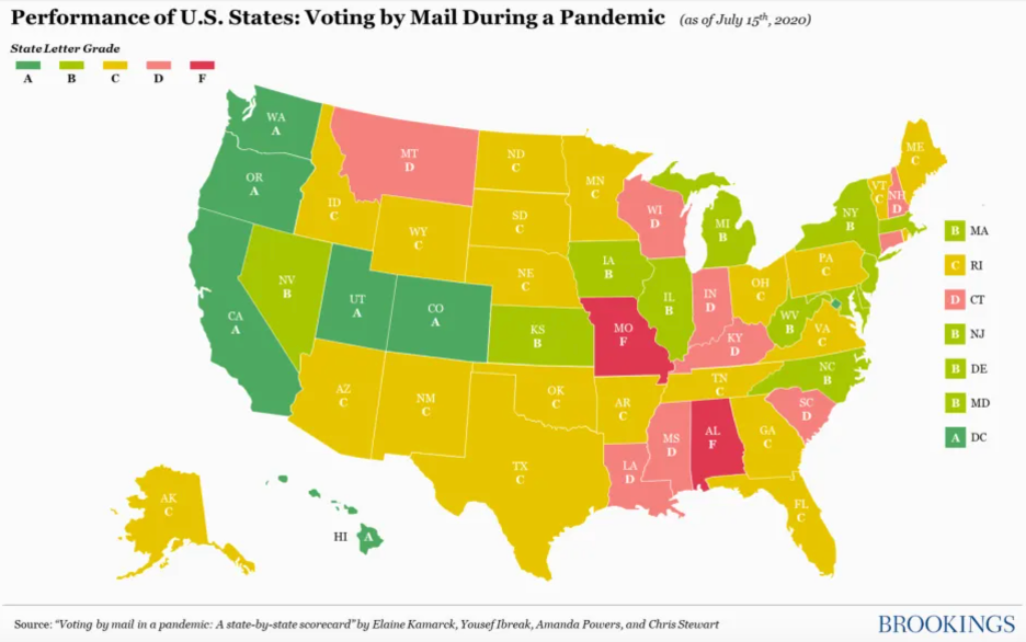 Kamarck recently worked on the development of a scorecard evaluating the difficulty of remote voting on a state-by-state basis. The scores depend on metrics such as the ease of requesting, completing and submitting mail-in ballots.
