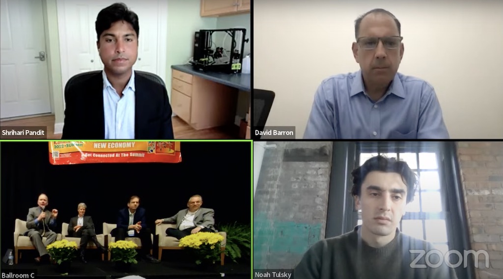 Photo of Shrihari Pandit and David Barron (on Zoom), and, Drew Clark, Andrew Semenak, Darrell Gentry, Joe Plotkin