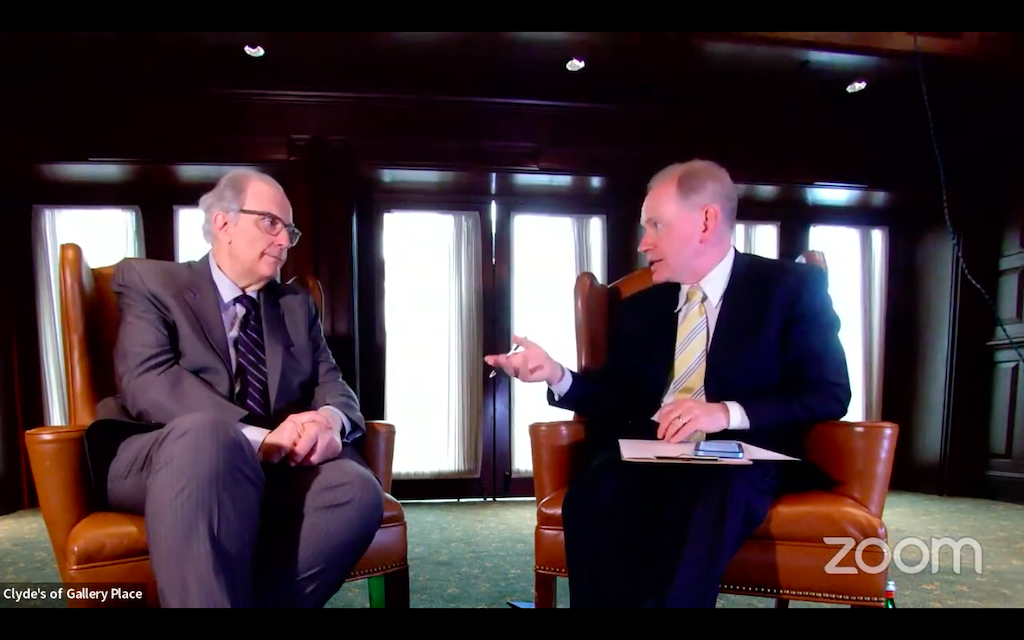 Photo of Christopher McLean and Drew Clark at Broadband Breakfast Live Online event on Wednesday.