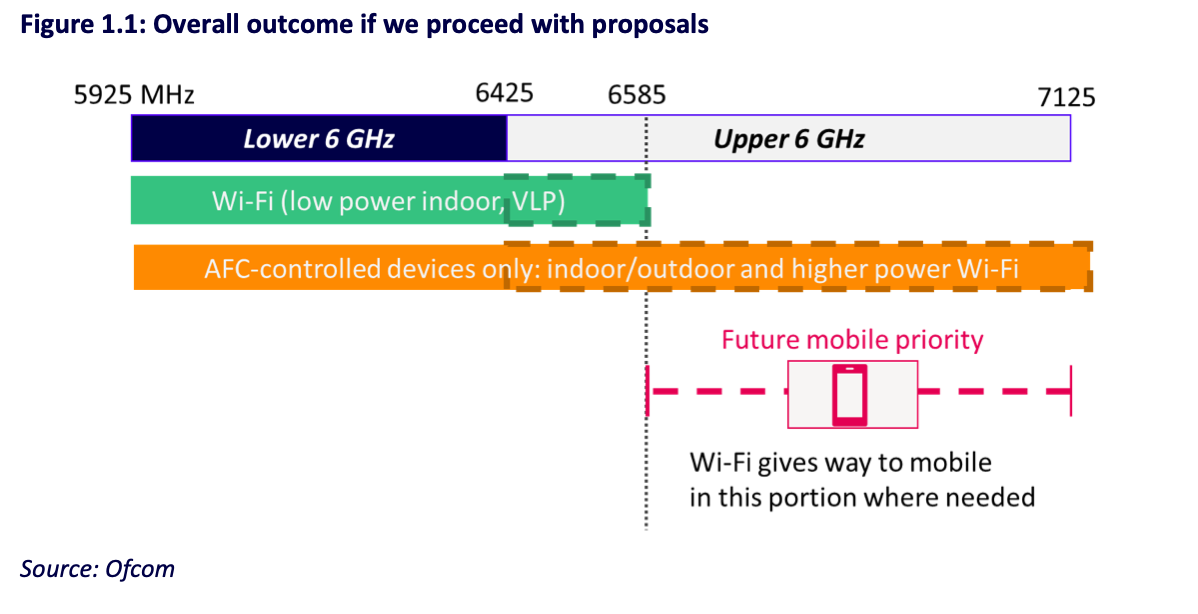 The Ofcom proposal comes as the American Federal Communications Commission is planning a vote to allow new, higher-power devices in the 6 GHz band, which Wi-Fi proponents are also excited about.